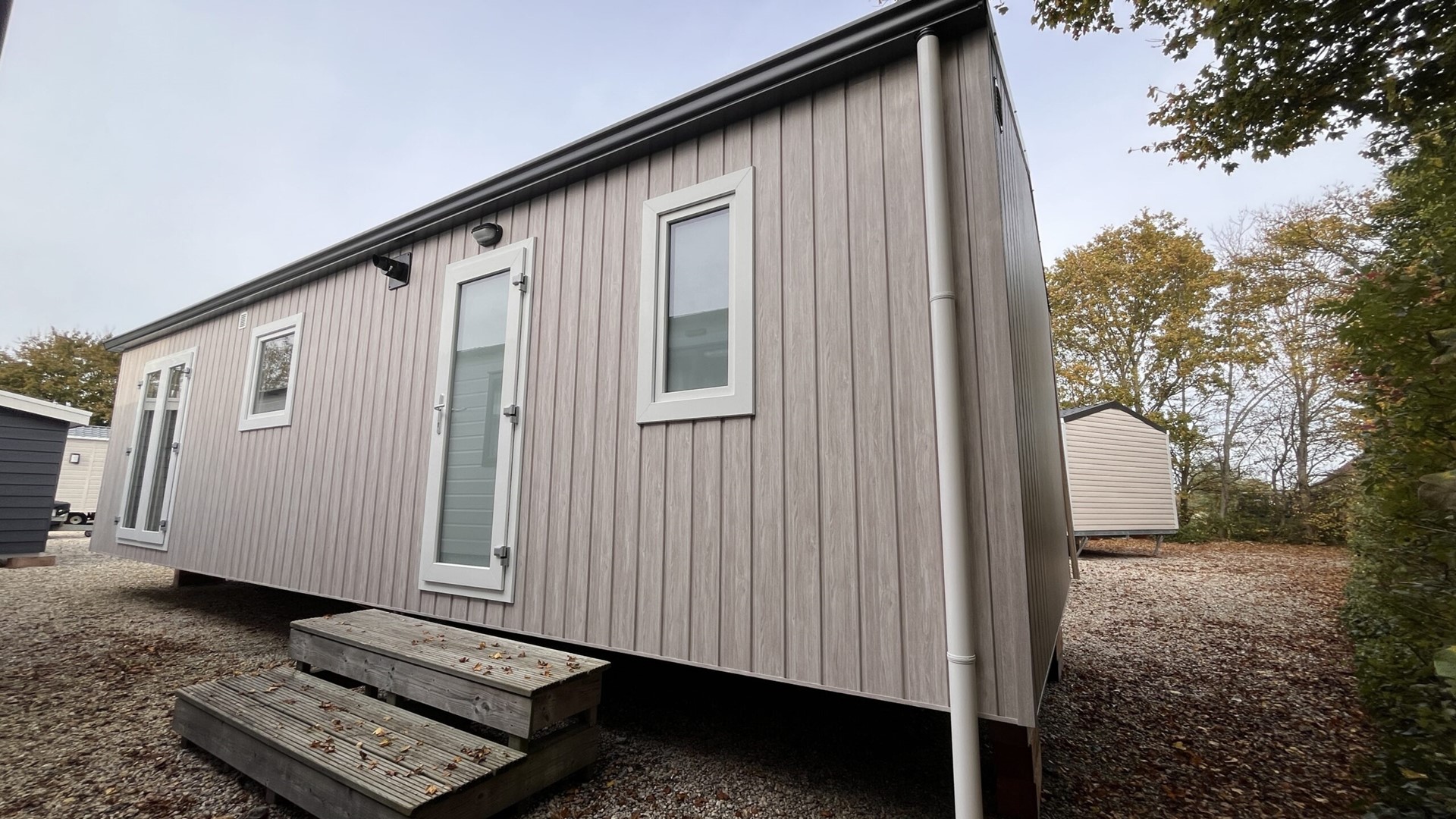 Naast het plaatsen van een schuurtje is ook de aanleg van de tuin bij de verkoopprijs inbegrepen. Het chalet is qua meubelen helemaal naar eigen wens in te richten.